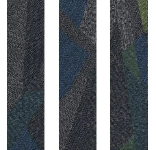 Med utgångspunkt i idéen om grupper av tre linjer utvecklas dessa geometriska former och blir abstrakta och slumpmässiga, alltid bekanta men aldrig desamma. Färgställningarna hos Flotex Triad-plankorna har starkt grafiskt och sofistikerad design och kan kombineras eller användas var för sig, med eller utan att samordning av accenter för ditt golv.