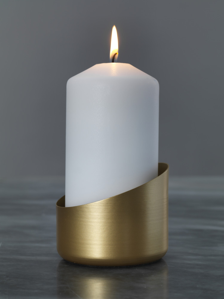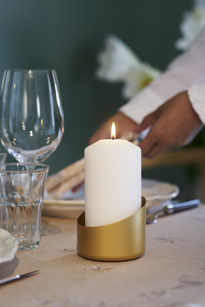 ● Elegant ljusfat i guldfärg – framhäver ljusets sken