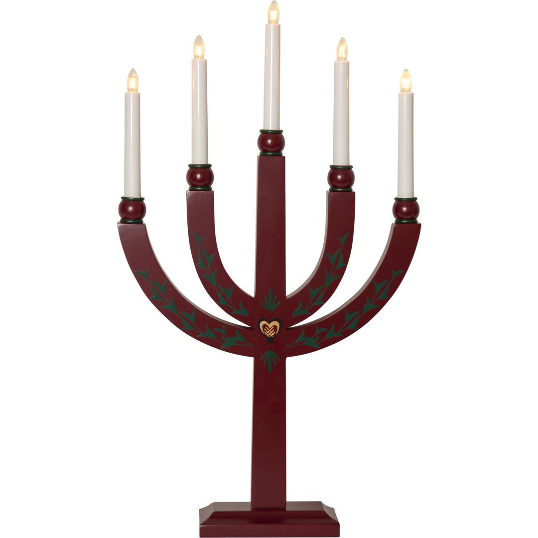 Traditionell träljusstake med fina detaljer Adventsljusstaken har 5 ljuskällor som ger ljusstaken en mysig belysning och en hemtrevlig julkänsla. Placera i fönstret eller på en skänk.