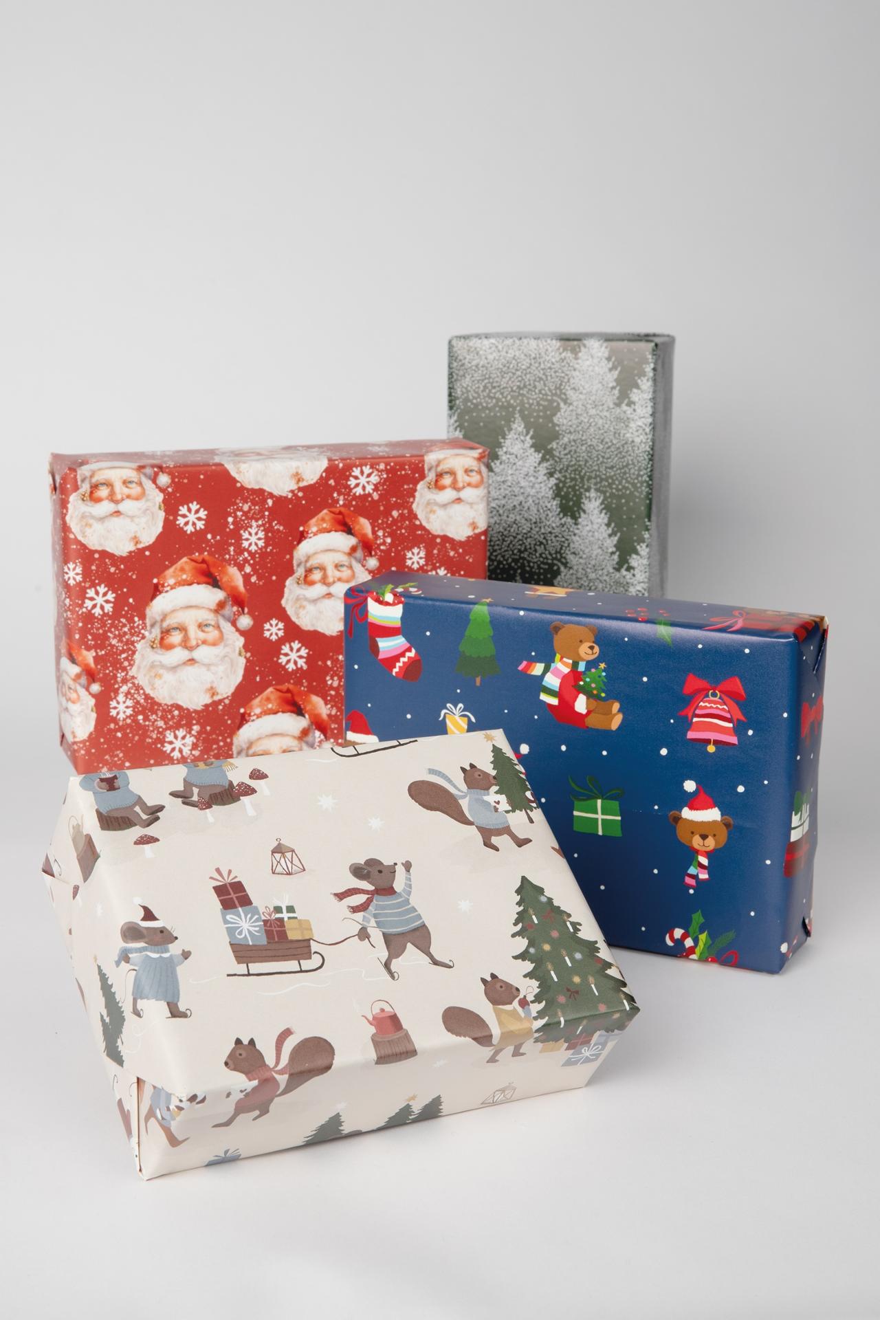 Set med julpapper tillverkat i Sverige av FSC-märkt papper.