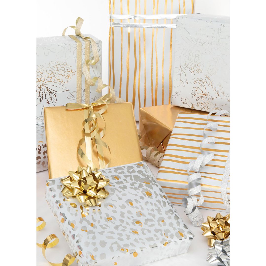En mix av presentpapper med metallic-look, för en lite lyxigare känsla. Presentpapper i fyra olika utföranden med metallic-tema. Innehåller 25st rullar per kartong.
