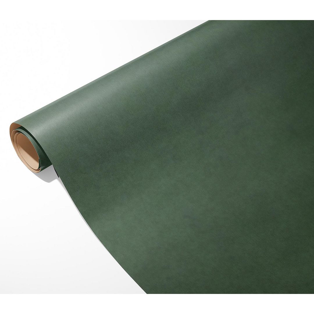 Mörkgrönt enfärgat FSC-märkt kraftpapper. Svensktillverkat brunt ribbat kraftpapper med grön ovansida, 80g.