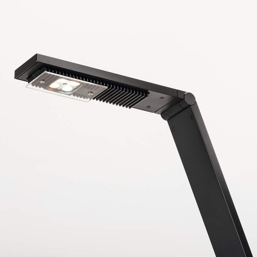 Trådlös LED-lampa med biologiskt effektivt ljus som är utvecklad för mobilt och flexibelt arbete både på kontoret och i hemmiljö. Lampan ger en jämn och kraftfull belysning av arbetsytan och bidrar till ökad koncentration och välbefinnande genom Human Centric Lighting. Den halksäkra foten i kombination med höjdreglerbart kantskydd gör att lampan står stabilt i alla lägen. Ljusstyrka och ljusfärg justeras intuitivt via pekpanel med avancerad VITACORE®-elektronik. Färgtemperaturen kan individuellt anpassas efter dygnsrytmen i tre nivåer. Tack vare det inbyggda litiumjonbatteriet erbjuder lampan upp till nio timmars driftstid. Det vridbara lamphuvudet möjliggör både direkt och indirekt ljus, samtidigt som effektiv temperaturhantering säkerställer en mycket lång livslängd på LED-modulerna.