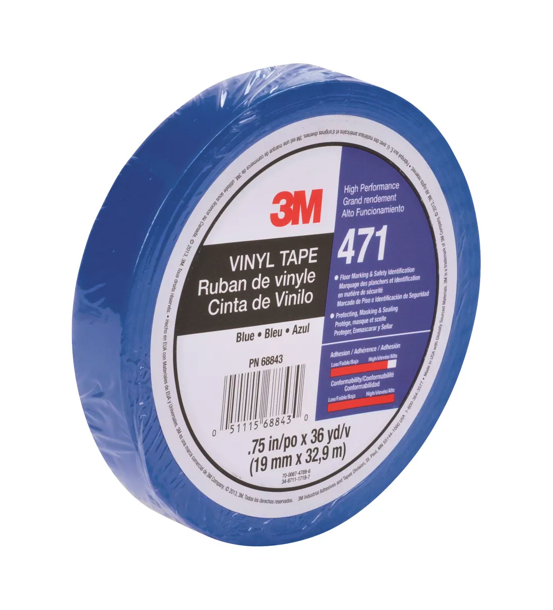 3Ms vinyltejp 471 används ofta för att markera riskzoner och gångar, färgkoda och skarva, som dekorativ detalj och maskeringstejp och mycket mer. Den mångsidiga tejpen har en vinylbaksida och ett gummibaserat häftämne som står emot skrapningar, slitage och väder för långvarig användning.
