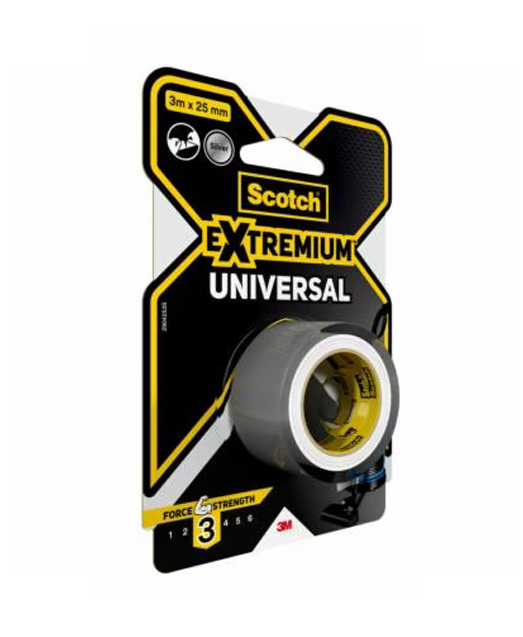 Scotch Extremium Universal vävtejp är speciellt framtagen för snabba förstärkningar och reparationer, vilket gör den till det perfekta valet för en mängd olika projekt och reparationer, till exempel hantverk, bunta ihop olika saker, förstärka bokbindningar och markeringsverktyg. Tack vare den förstärkta baksidan som är hållbar, formbar och flexibel kan den här tejpen fästa mot de flesta ytor såsom plast, papper, trä och metall. Det går att skriva på tejpen med de flesta blyerts- och tuschpennor. Du behöver ingen sax eftersom tejpen lätt rivs av för hand. Finns i svart, vitt och silver.
