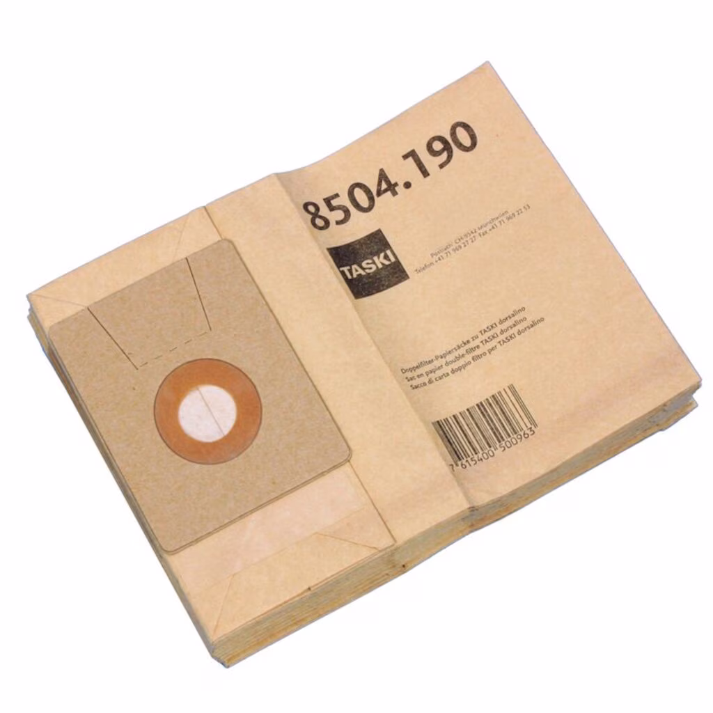 Taski Dorsalino pappersdammpåsar är designade för att passa TASKI Dorsalino ryggdammsugare. Dessa engångsfilterpåsar är tillverkade av högkvalitativt papper och levereras i ett paket om 10 stycken. De är utformade för att effektivt fånga upp damm och smuts, vilket säkerställer en ren och hygienisk arbetsmiljö.