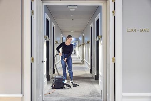 VP400 representerar en ny nivå av enkelhet, där kraftfull prestanda och hög komfort kombineras i en kompakt och lättmanövrerad design. Den nykonstruerade hjulbasen ger exceptionell stabilitet och smidig rörelse, vilket gör att dammsugaren följer användaren med precision och minimerar ansträngningen under arbetet.