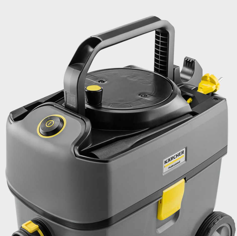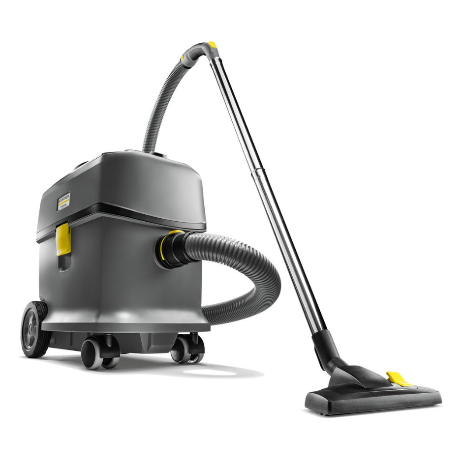T 15/1 är en kraftfull och extremt tyst torrdammsugare som är tillverkad av 45 % återvunnet material, vilket gör den både hållbar och miljövänlig. Den kombinerar hög sugkraft med en mycket låg ljudnivå på endast 52 dB(A), vilket gör den idealisk för rengöring i ljudkänsliga miljöer under dagtid. Den robusta konstruktionen med slitstarkt chassi, stora hjul och stötfångare säkerställer lång livslängd, medan den ergonomiska designen gör den enkel att transportera och använda.