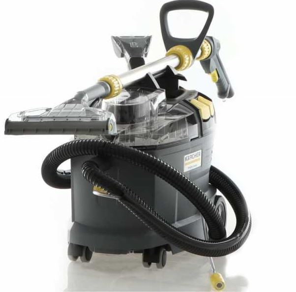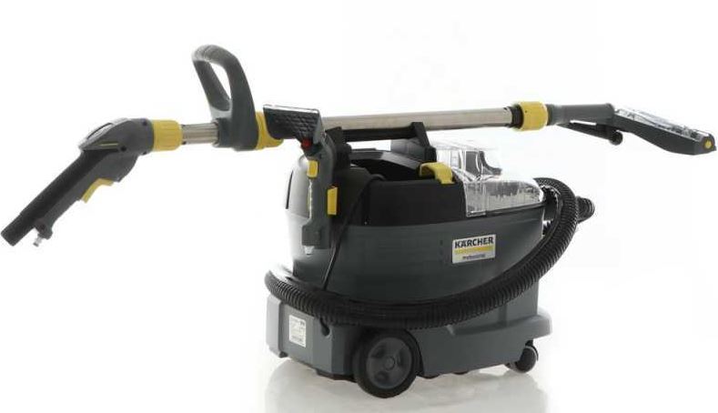 Kärcher Puzzi 8/1 är en robust och effektiv sprayextraktionsmaskin som levererar professionell djuprengöring av textilytor och klädsel. Maskinen sprutar rengöringslösning djupt ner i fibrerna och suger sedan upp smutsen tillsammans med vätskan, vilket ger hygieniska resultat och snabb torktid. Den kompakta designen, låga vikten och ergonomiska handtaget gör den enkel att transportera och använda, även i trånga utrymmen. Transparent lock och munstycke ger tydlig kontroll över smutsvattnet under arbetet.
