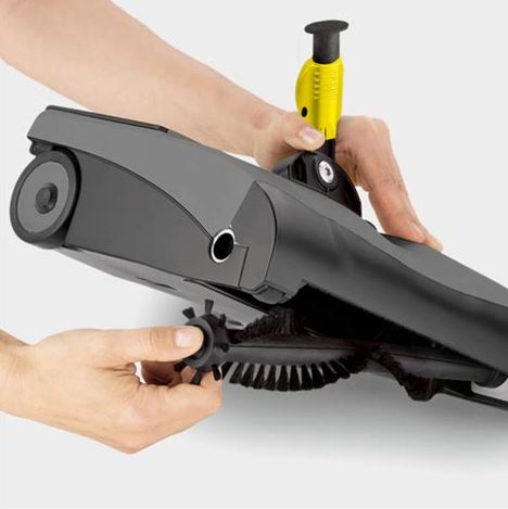 Kärcher EB 30/1 är en sladdlös elektrisk sopborste med fotstyrd på/av-knapp för enkel användning. Den når smuts ända till 2 mm från kanter tack vare sin smala konstruktion på endast 9 cm.