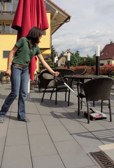 Den kompakta konstruktionen, låga vikten och den låga höjden på endast 10 cm gör det enkelt att rengöra även under låga möbler och på svåråtkomliga platser. Maskinen kan enkelt fällas ihop och transporteras på en städvagn.