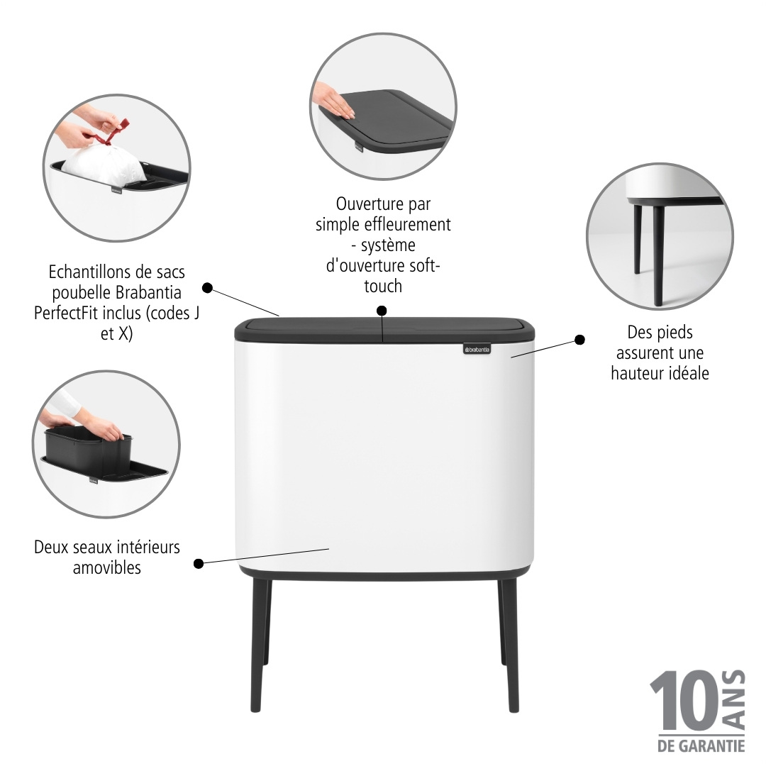 Letar du efter en vacker lösning för källsortering? Denna Bo Touch Bin på 23 + 11 liter från Brabantia ser inte bara ut som en möbel utan har också allt du behöver för enkel källsortering. Den har två avtagbara innerhinkar för två typer av avfall, passar perfekt mot en vägg och är försedd med justerbara antiglidfötter, vilket gör att den står stabilt. Den har en 'soft-touch' öppningsfunktion som gör att den enkelt och smidigt kan öppnas med ett lätt tryck. Det kallar vi sortering med stil!
