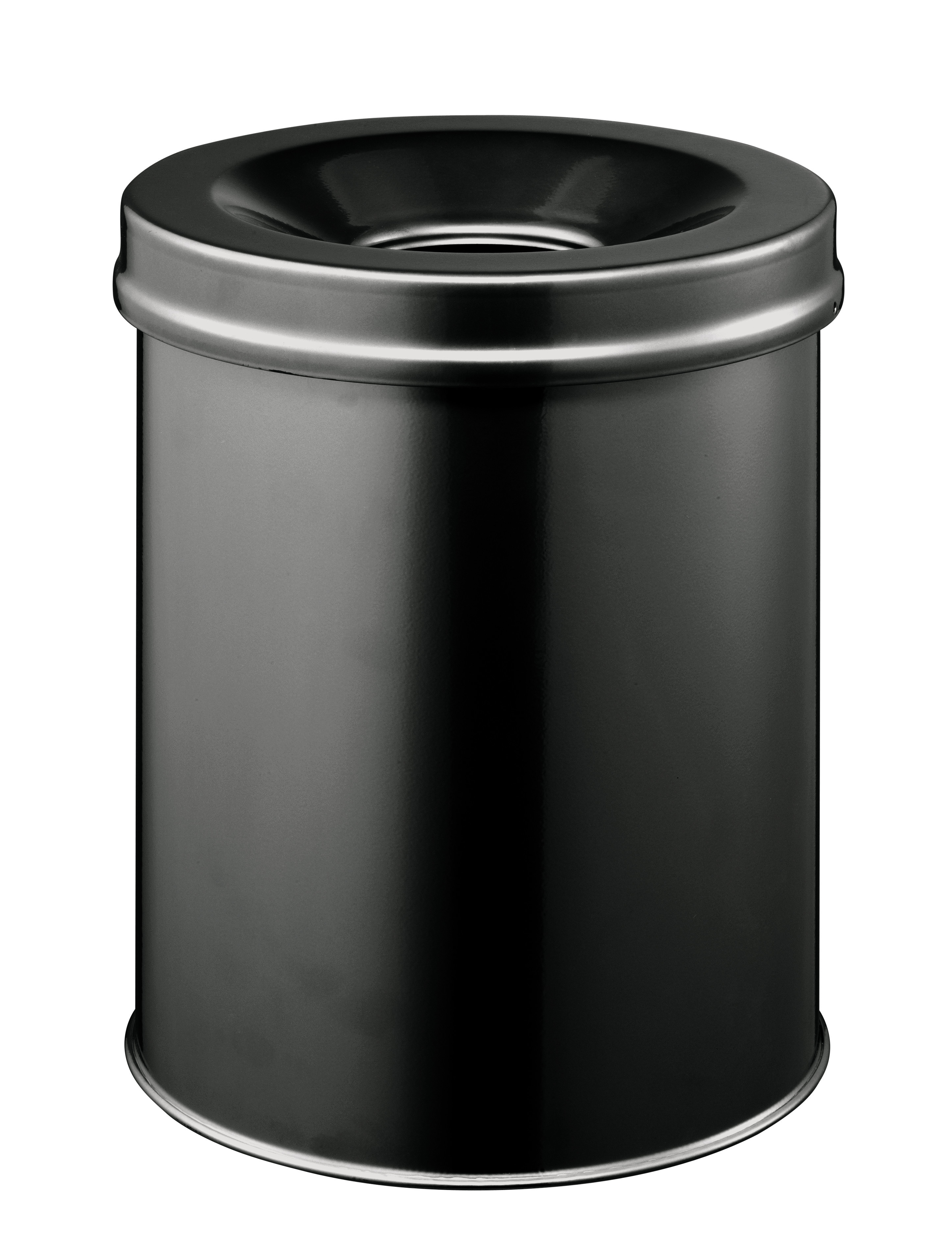Papperskorg med avtagbart, självsläckande lock som minskar syretillförseln och kväver lågorna om det börjar brinna i avfallsbehållaren. Kvalite. Tillverkad av metall med reptålig epoxihartsbeläggning.