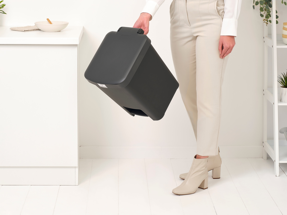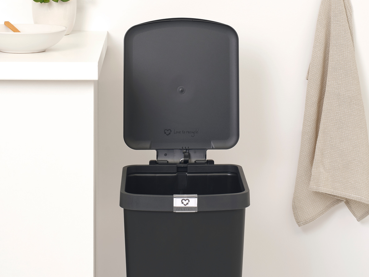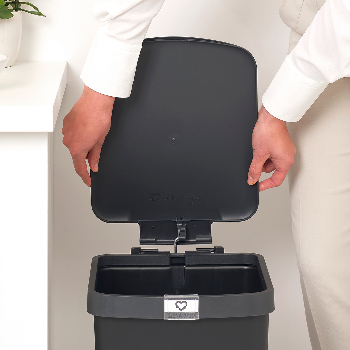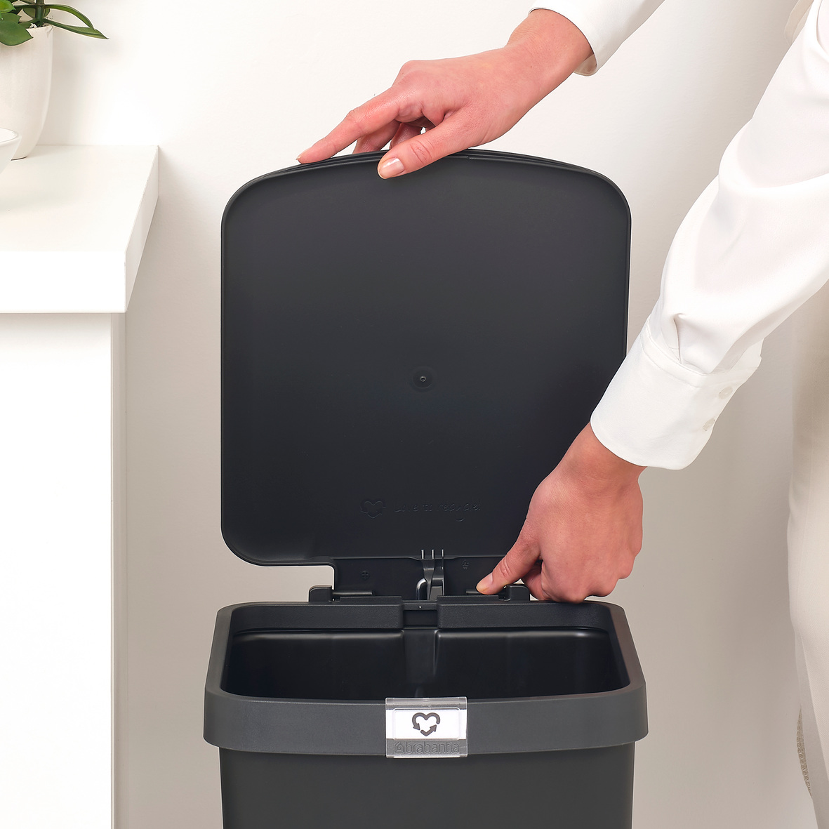 Öka din återvinning med Brabantia StepUp Pedalhink 25L! Tillverkad av 91 % återvunnet material är den som gjord för återvinning av avfall. Den har en etiketthållare som är lätt att klicka på för dina egna avfallsetiketter och den är liten nog att passa var som helst. Om du verkligen tycker om återvinning kommer du garanterat att älska den här pedalhinken.