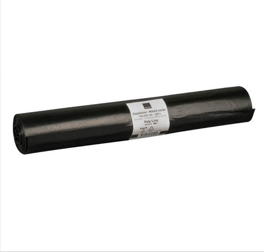 Svart 125 liters sopsäck av LLDPE. Stl 75 x 115 cm, 35 my. Kvaliteten och plastens