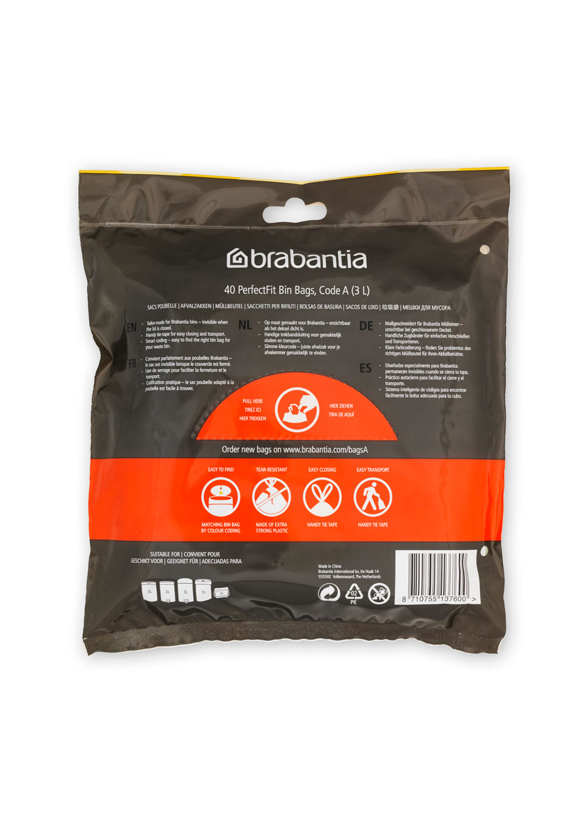 - Stock up - 40 bin bags that perfectly fit your 3 litre Brabantia bin (code A).