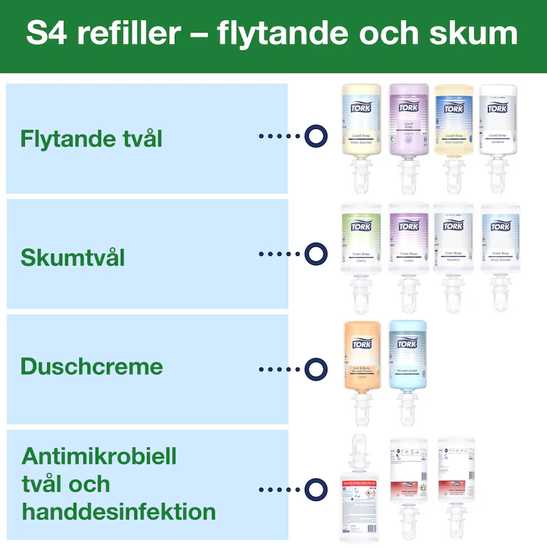 ● Bidrar till god hygien: Fabriksförseglad refill med ny pump för varje påfyllning för att minska risken för smittspridning och skydda innehållet hela vägen till användaren.