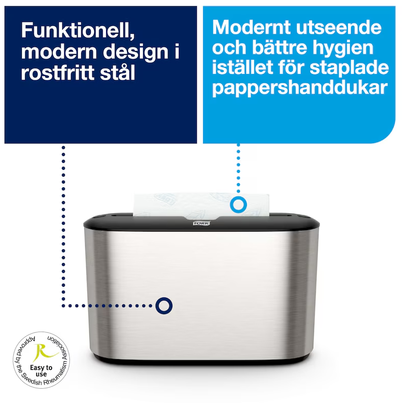 En modern design med släta ytor och rena linjer som smälter in i ditt toalettutrymme. Skapar ett bra intryck och förstärker känslan av hög kvalitet i din verksamhet. En elegant dispenser med ett hölje i lätt borstat rostfritt stål med skydd mot fingeravtryck som håller den snygg och ren.