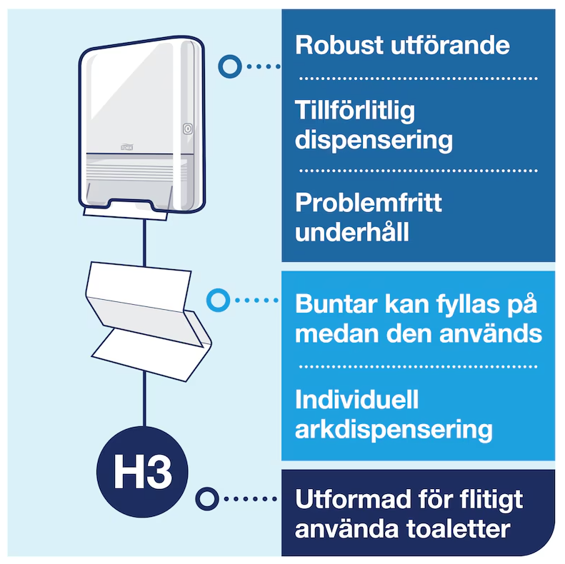 Tork Dispenser Singlefold Handduk Vit H3