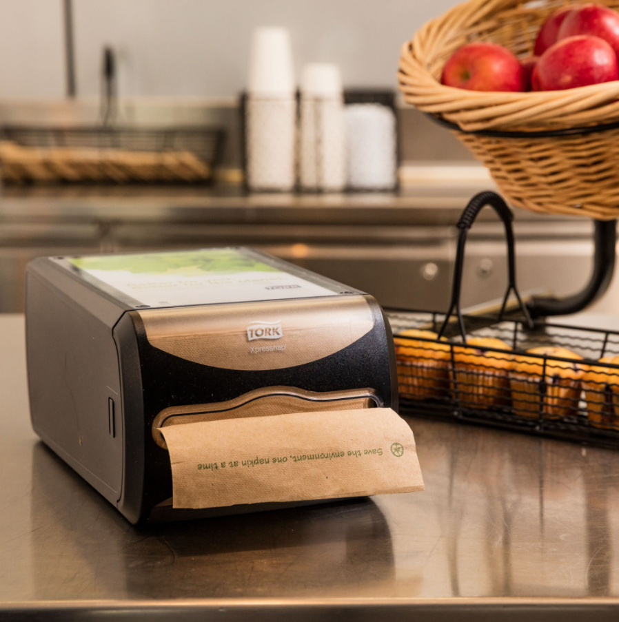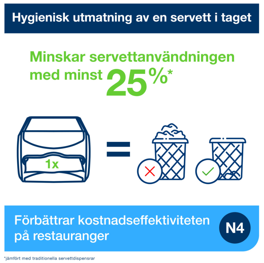 Utmatning av en servett i taget minskar onödig förbrukning och avfall.