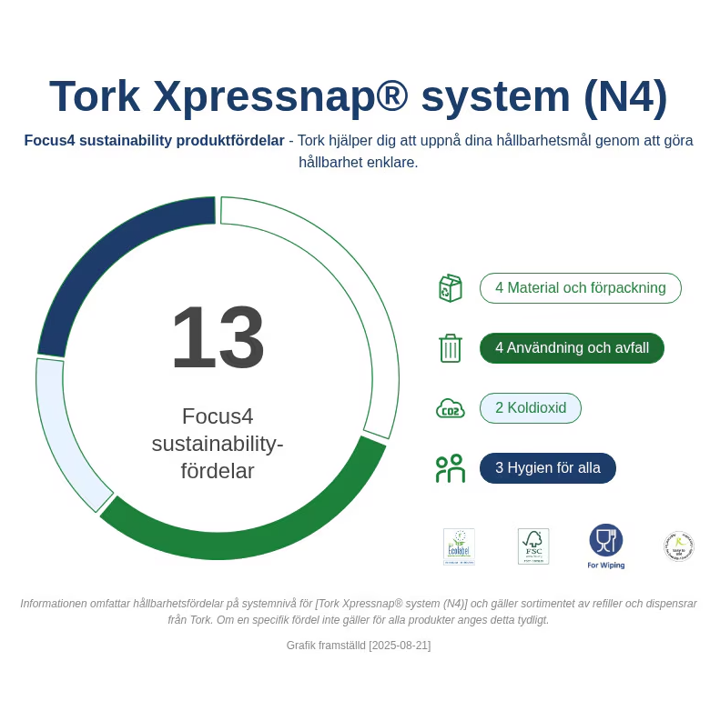 ● Genomsnittligt koldioxidavtryck: 3,5 g CO₂-ekv. per användning (cradle-to-grave), varav 2,2 g CO₂-ekv. cradle-to-gate (EU). *