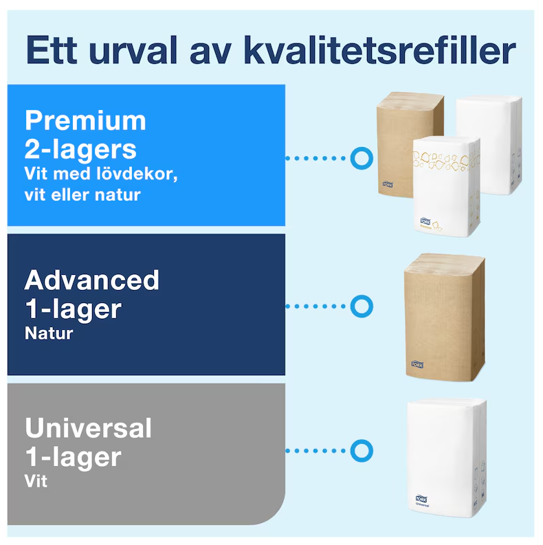 Hos oss hittar du hela Tork sortimentet, inklusive ett stort lager av torkpapper. Tork, ett varumärke ägt av Essity, är känt för sin världsledande kvalitet. Vi erbjuder snabb expressleverans för företag som behöver pålitliga lösningar. Vi säkerställer att du får de bästa produkterna för din arbetsplats, alltid med snabb och säker leverans direkt från vårt lager.