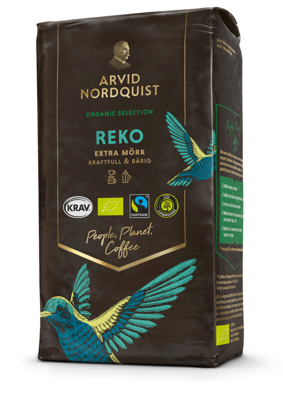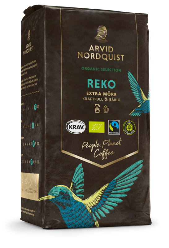 Reko ingår i Arvid Nordquists Selection-sortiment, som består till 100% av ekologiska Arabicabönor av hög kvalitet. Kaffet rostas fossilfritt och är både Fairtrade-, EU-ekologiskt- och KRAV-certifierat, vilket garanterar ett hållbart och ansvarsfullt kaffe från böna till kopp.