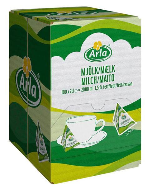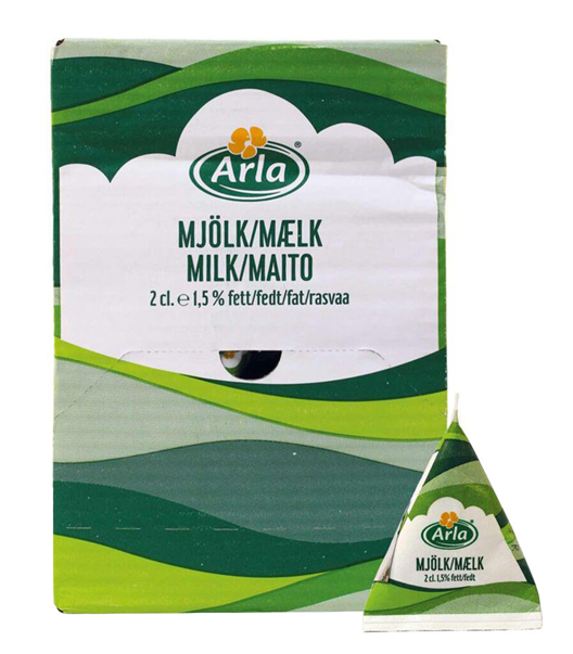 Arla® mellanmjölk i smidiga portionsförpackningar för gäster som vill ha MJÖLK till sitt kaffe eller te. Ställ fram den praktiska kartongen så kan gästerna själva ta sina portionsförpackningar. Produkten kan förvaras i rumstemperatur.