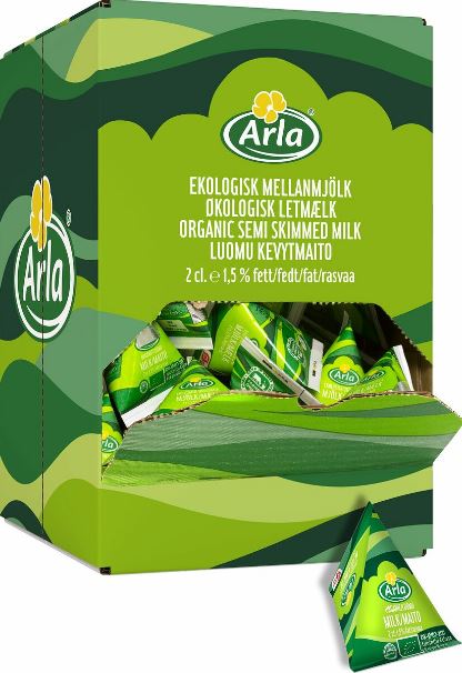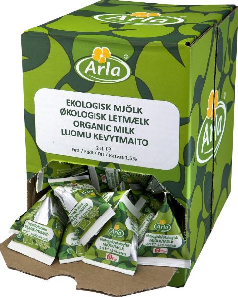 Arla® ekologisk mellanmjölk i smidiga portionsförpackningar – perfekt för gäster som önskar ekologisk MJÖLK till sitt kaffe eller te. Den praktiska kartongen gör det enkelt att servera och förvara. Produkten kan stå i rumstemperatur utan att förlora kvalitet.
