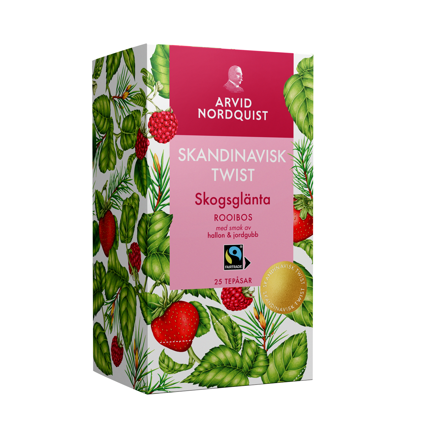 Klassiskt te med skandinavisk twist – Skogsglänta är ett rogivande rooibos-te med söt smak av hallon och JORDGUBBE. En ekologisk och rättvisemärkt produkt som speglar Arvid Nordquists passion för smak, kvalitet och hållbarhet.