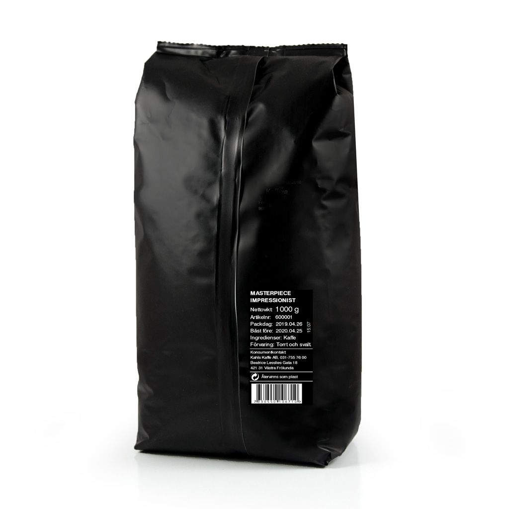 Kahls Hela Bönor Masterpiece Impressionist är ett mellanrostat kaffe med klassisk smak och många dimensioner. Arabica-bönorna från Brasilien ger en söt och rund smakupplevelse, medan Monsun Malabar bidrar med ökad fyllighet. Som avslutning tillförs fantastiska chokladtoner från bönor från Nicaragua, vilket ger en söt och balanserad kopp kaffe.