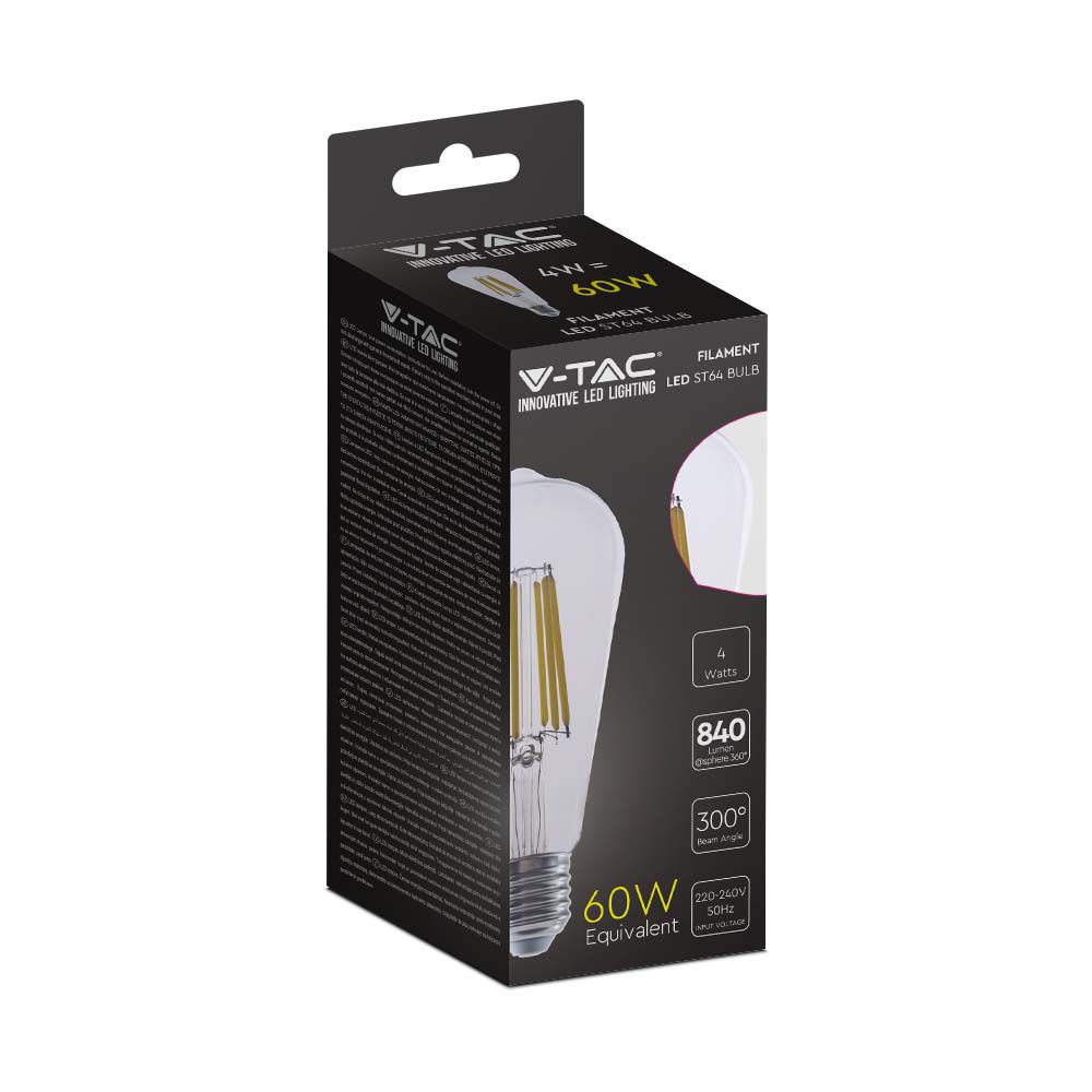 V-TAC LED Bulb ST64 E27 Holder IP20 Clear 4W 840 Lumens 3000K