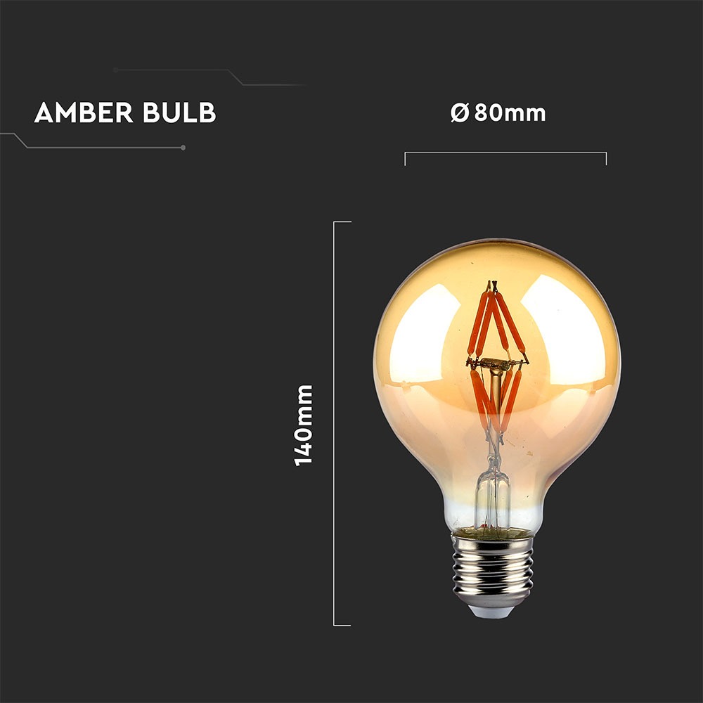 V-TAC LED Bulb 4W Filament E27 G80 Amber Warm White