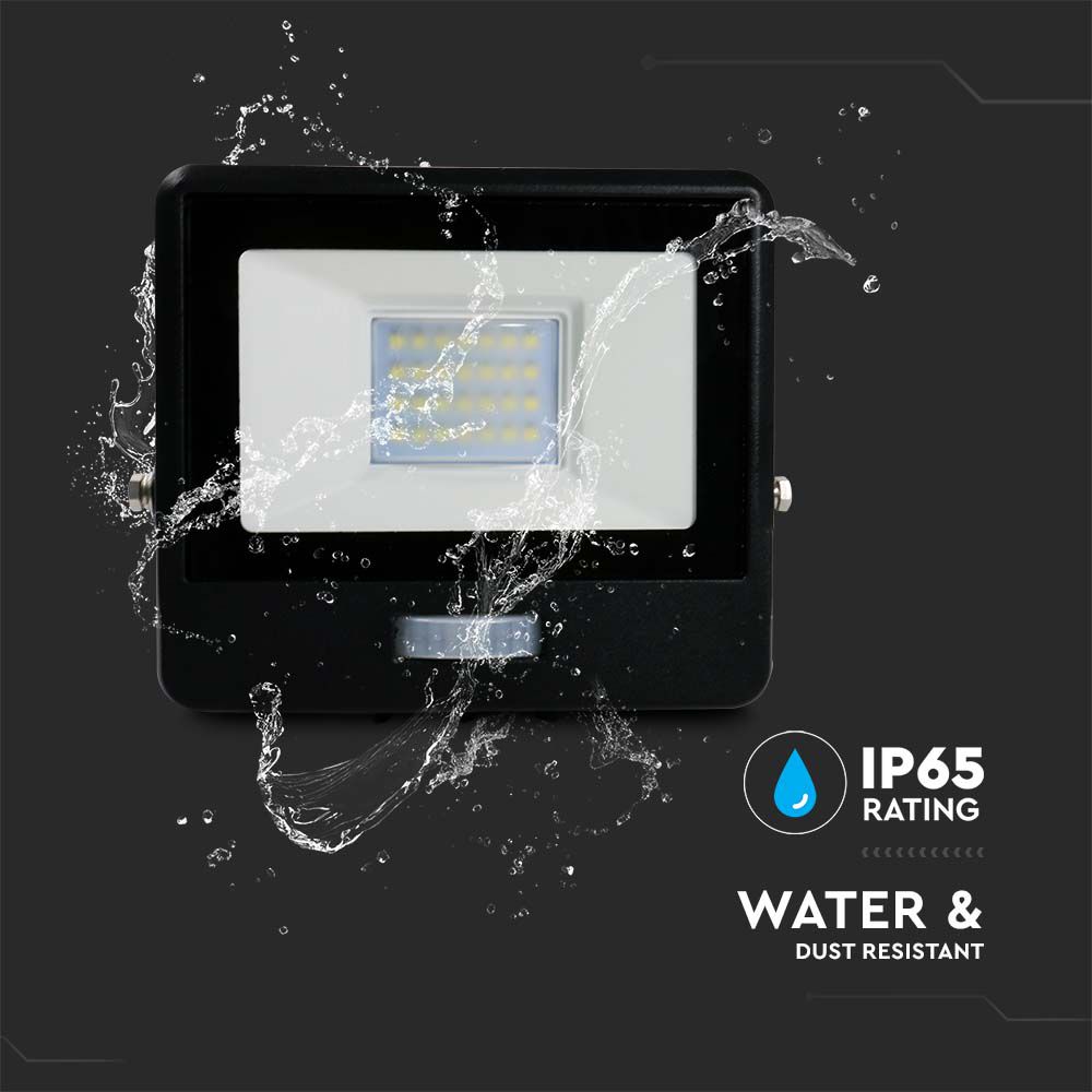 V-TAC LED Floodlight Samsung PIR Sensor IP65 Waterproof Black 20W 1510 Lumens 3000K