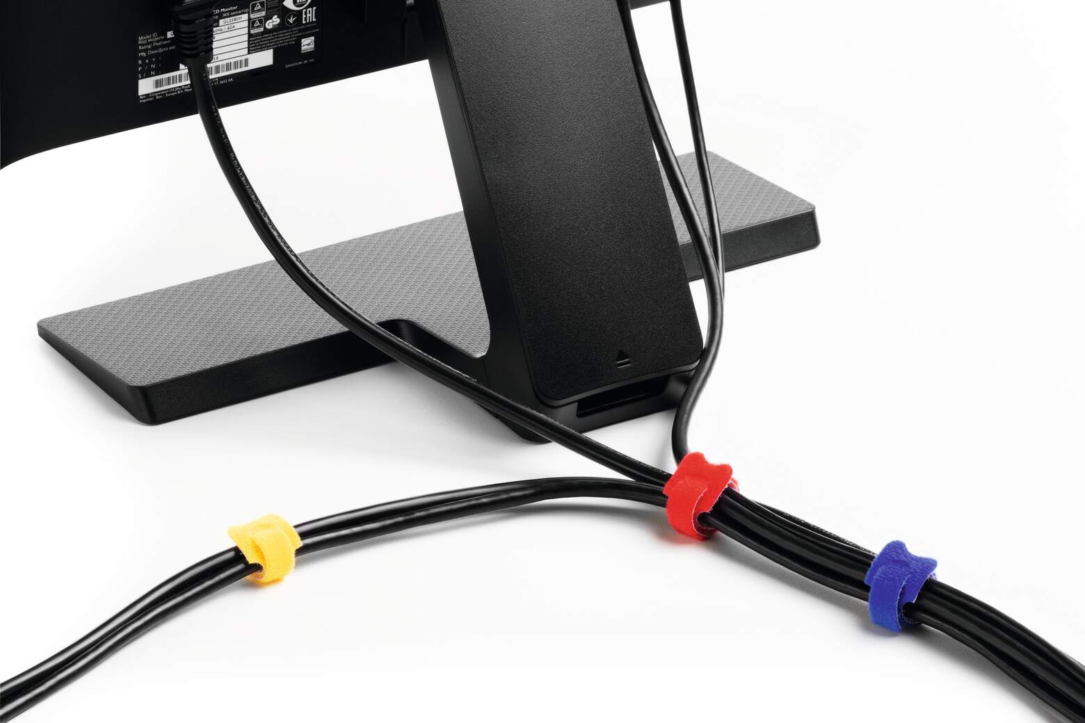 Håll ordning på kablarna med CAVOLINE® både på kontor och i hemmiljö. Samla ihop kablarna så ser det prydligare ut och blir dessutom mer lättstädat. Det 1 cm breda kardborrbandet kan dras åt hårt tack vare öglan. Bandet kan användas flera gånger. Förpackning med en av varje färg vit, svart, blå, röd och gul. Mått: 20 x 1 cm (L x B)