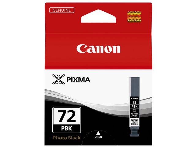 Få skarpa och högkvalitativa utskrifter med bläckpatronen Canon 72. Denna bläckpatron innehåller 14 ml fotosvart bläck och har en kapacitet på 160, 165, 202, 303, 315, 377, 510, 525, 710, 1045 sidor med 5 % täckning.