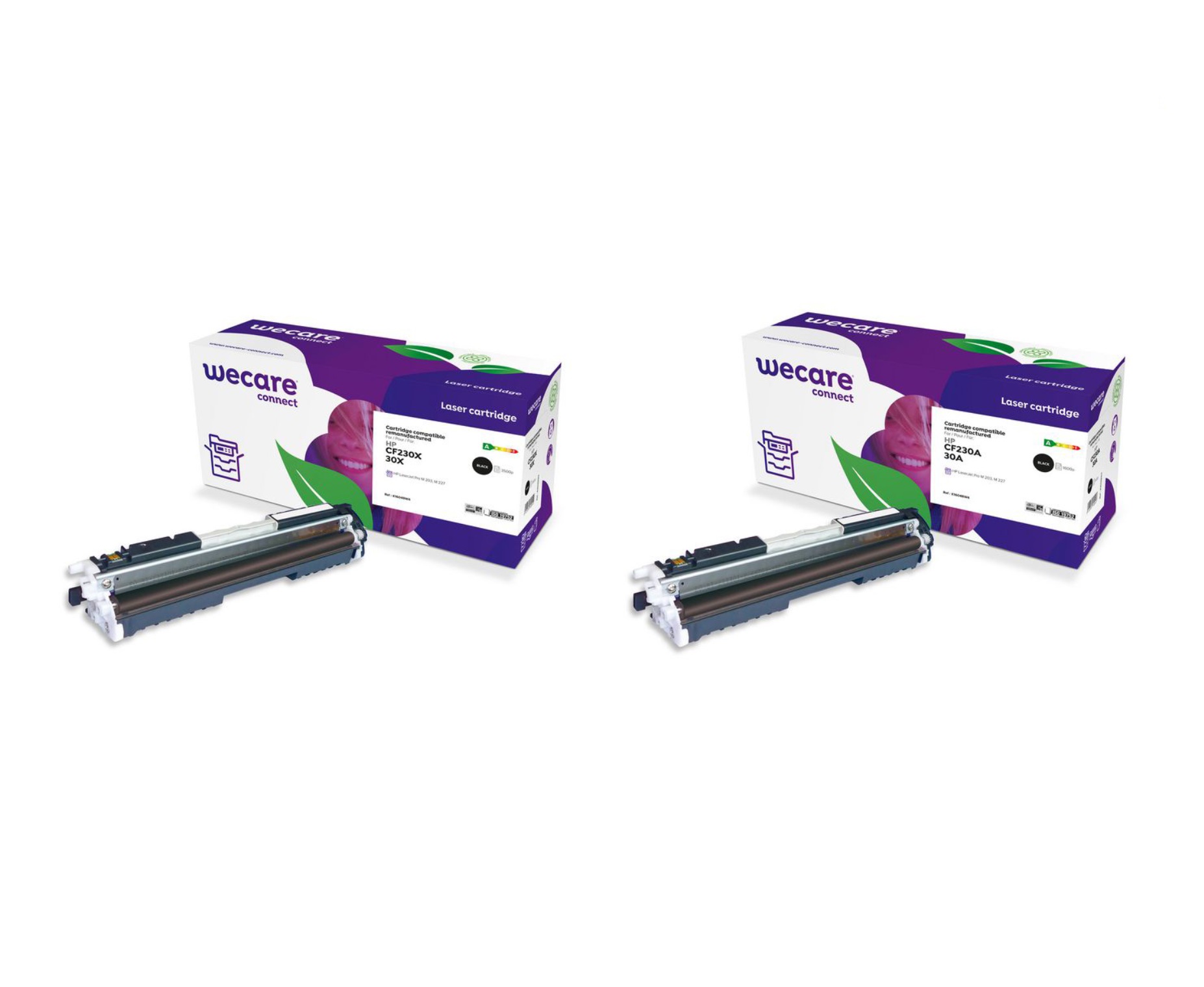 WeCare-märkta produkter kombinerar enastående kvalitet, miljöansvar och betydande kostnadsbesparingar. WeCare-tonerpatronerna tillverkas i ISO-certifierade fabriker. Kvalitet och antal utskriva sidor uppfyller eller överstiger skrivartillverkarnas normer. Patronerna är också certifierade med Nordens officiella miljömärkning (Svanen), som garanterar en hållbar strategi vid nytillverkningsprocessen. Vi har toner till alla kända varumärken och modeller.