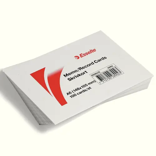 Esselte® Cardo refillkort är vita, linjerade på båda sidor och av A7 A6 A5-format, vilket gör dem lätta att använda och läsa. De är tillverkade av träfritt papper och har hög kvalitet med en tjocklek på 170 g/m².