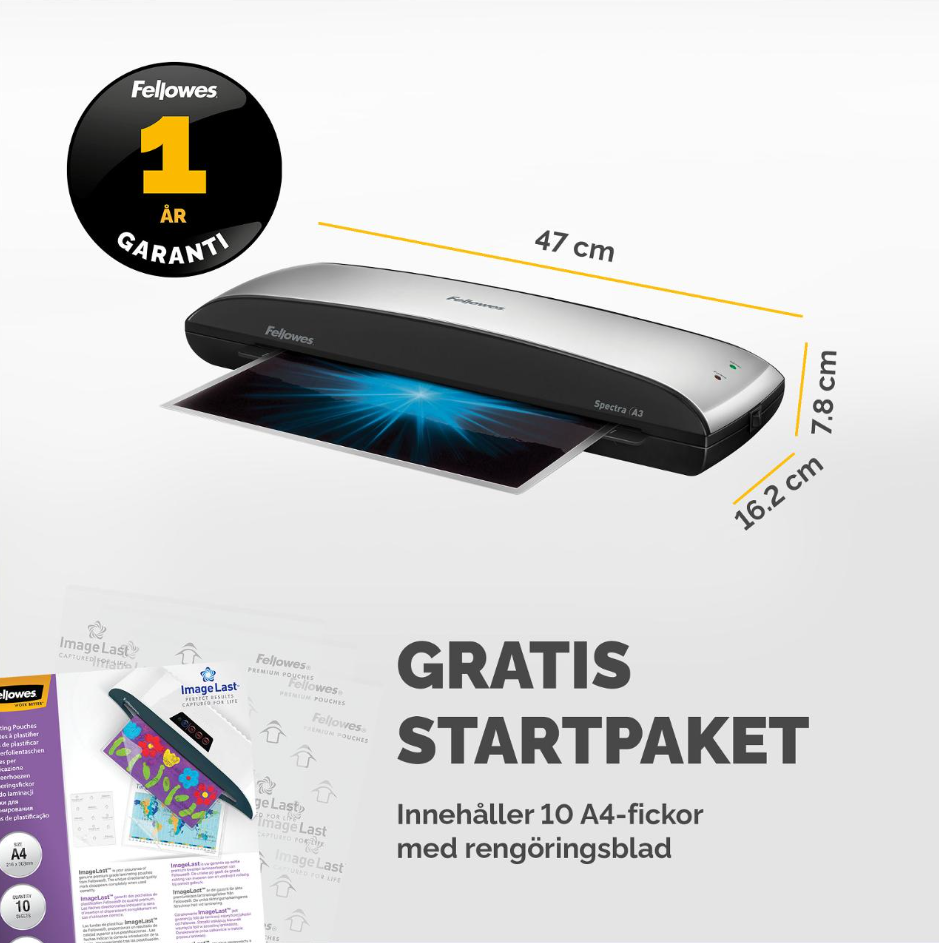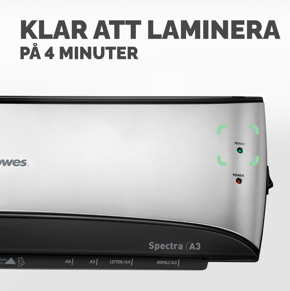 Fellowes Spectra A3 är en användarvänlig lamineringsmaskin som är idealisk för hemmabruk eller hemmakontor. Maskinen gör det enkelt att laminera dokument upp till A3-format och skydda dem mot smuts och skador. Den är utrustad med automatisk avstängning som aktiveras efter 30 minuters inaktivitet för att minska energiförbrukningen.
