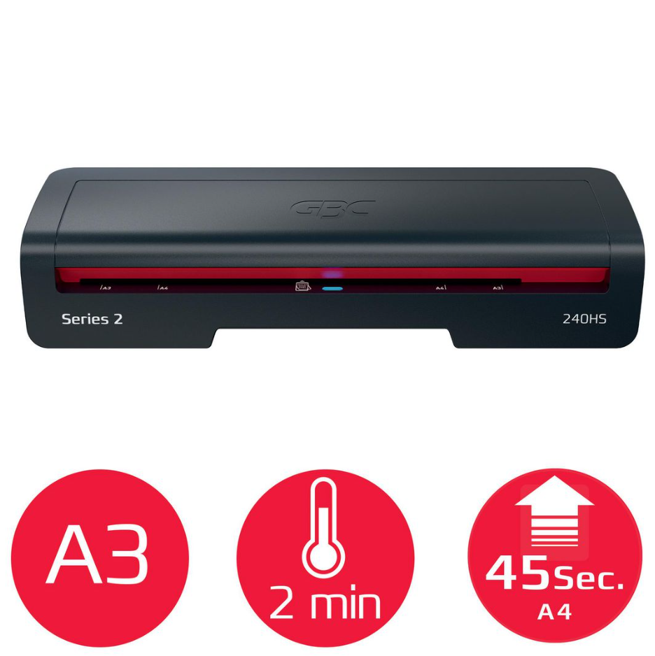 GBC 240HS är en höghastighets lamineringsmaskin som kombinerar stilren design med kraftfull prestanda. Den är idealisk för både hem och kontor och gör det enkelt att skydda viktiga dokument med professionellt resultat. Med snabb uppvärmning och effektiv laminering är den perfekt för daglig användning och olika projekt.