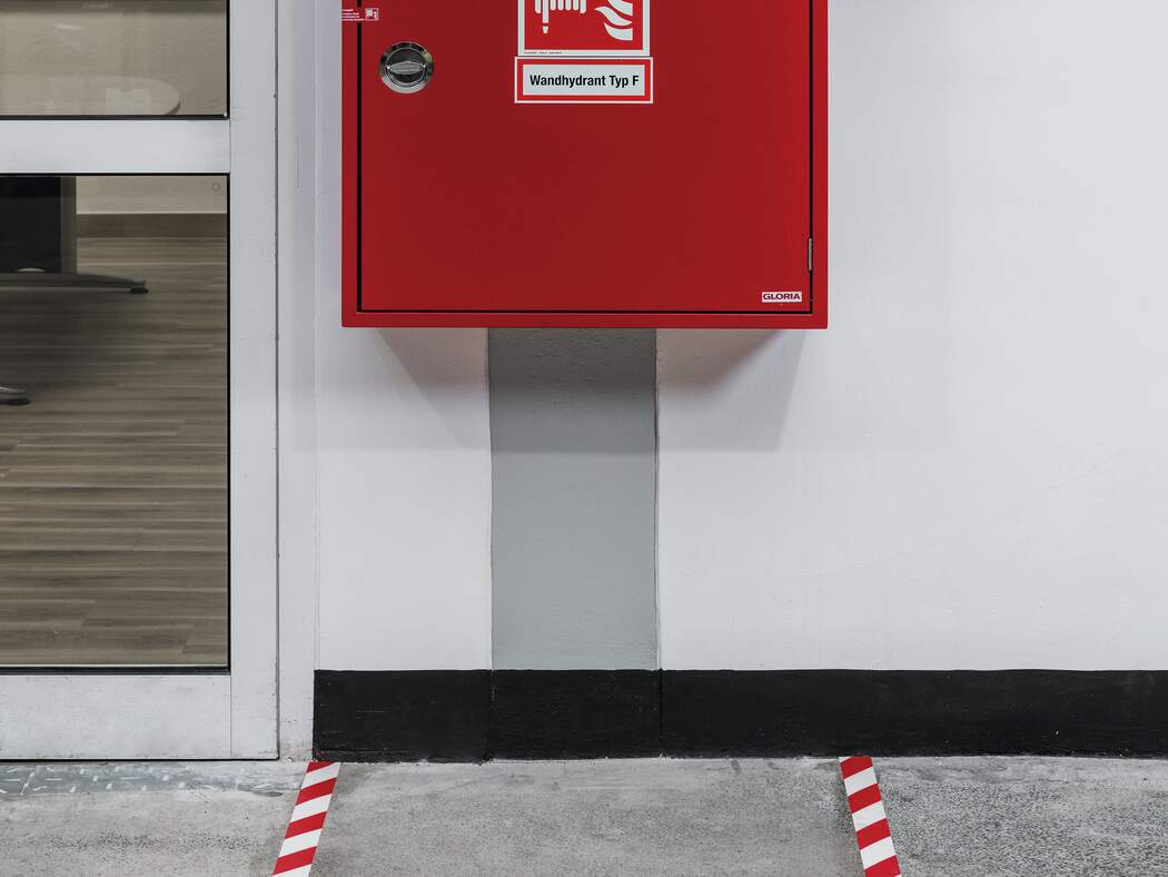 Självhäftande randig markeringstejp för inomhusbruk. Används för permanent markering av riskområden som behöver uppmärksammas t ex trafikzoner och spärrområden. Fäster på rena och torra betonggolv. Halkskyddsgrad R9 i enlighet med DIN51130. Röd / vit varseltejp används för brandskyddsvägar och annat som rör brandskydd. Mått (B x L): Rulle om 30 m, 50 mm bred, tjocklek 0,7 mm