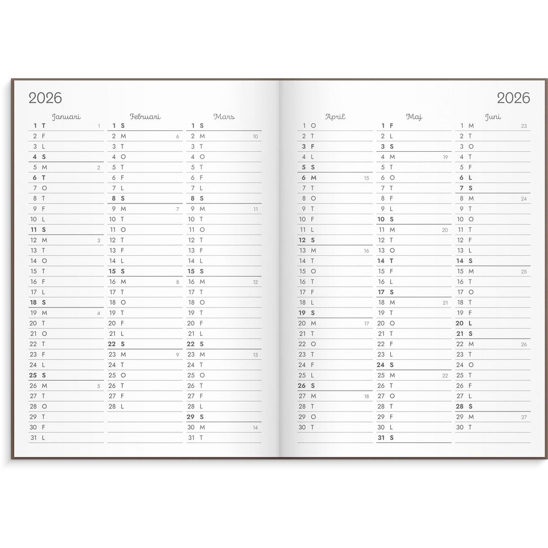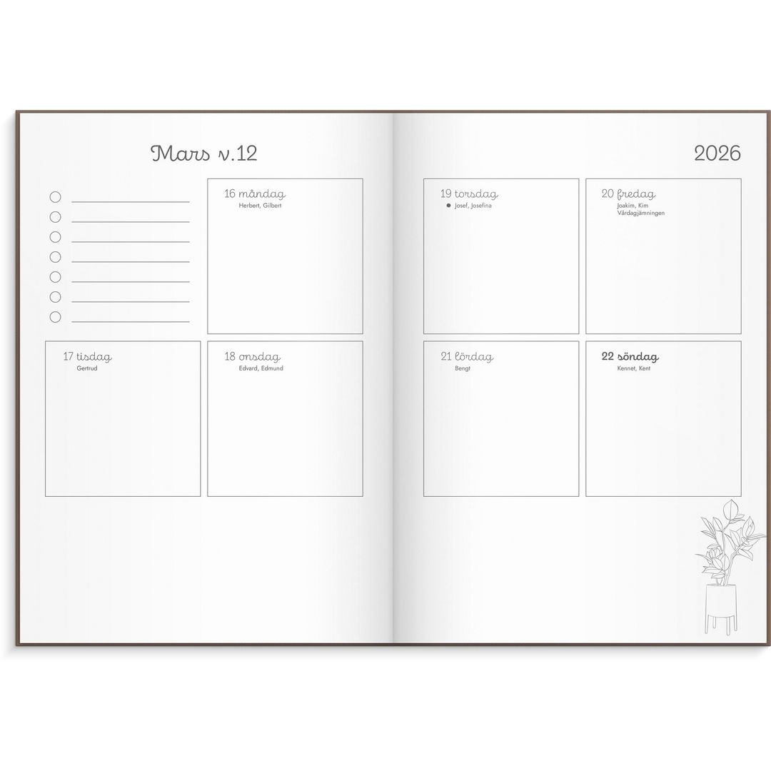 ● Innehåll: Månadsplanering, Anteckningssidor prickade, Veckoplan, Årsöversikt/årsöversikter, Årsplan/årsplaner