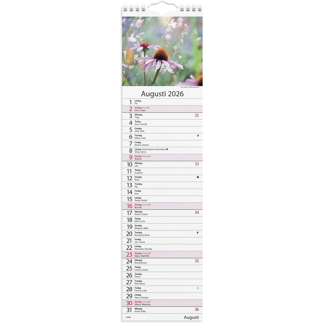 Väggkalender med hemtrevliga bilder från Sverige och praktisk layout med en månad per blad. Perfekt för att hålla koll på viktiga datum samtidigt som det finns utrymme för egna anteckningar.