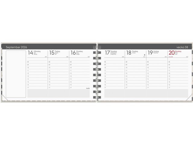 ● Layout: Stående. Vecka/uppslag. Timindelning 8-17