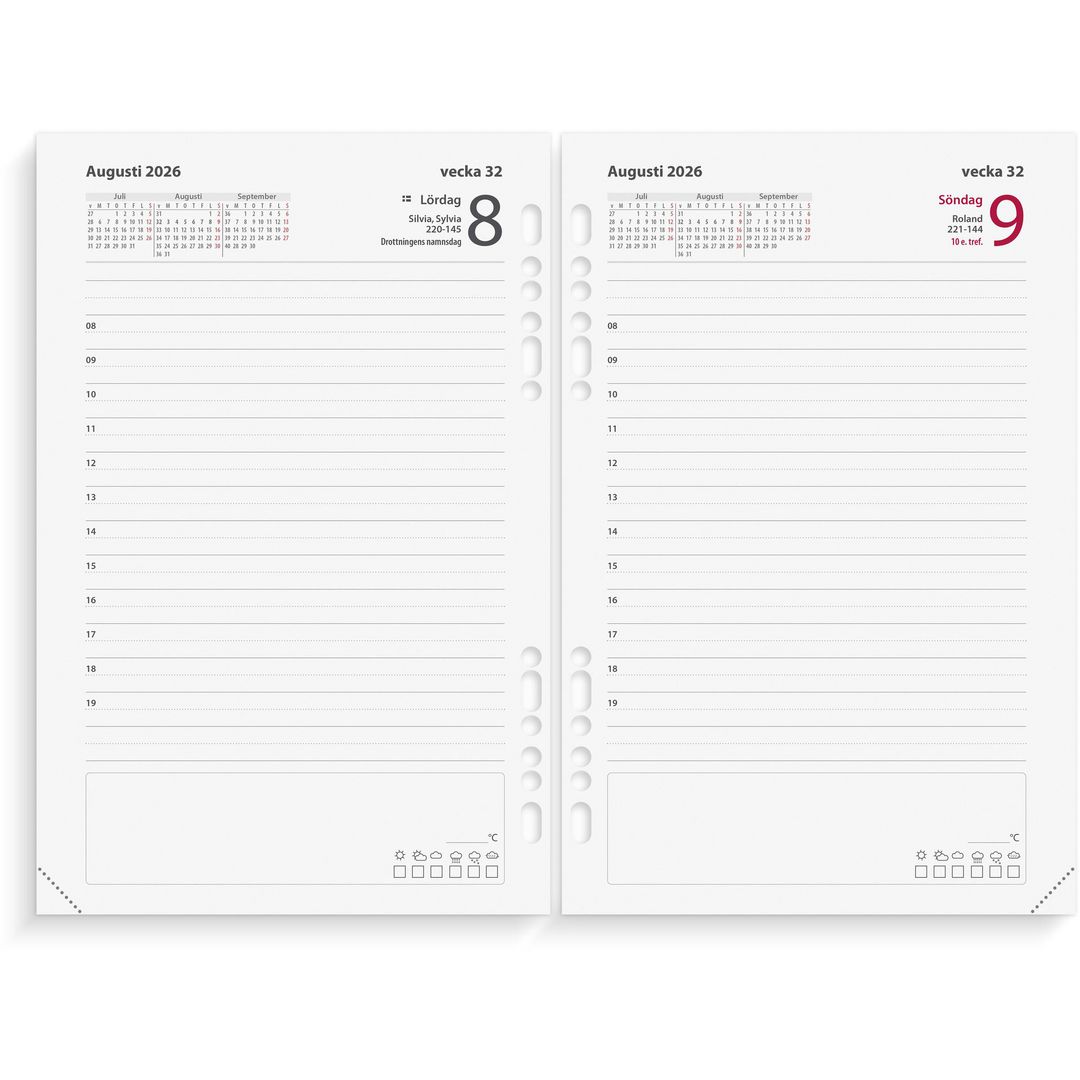 Hålad kalenderrefill till systemkalender med ringmekanism.