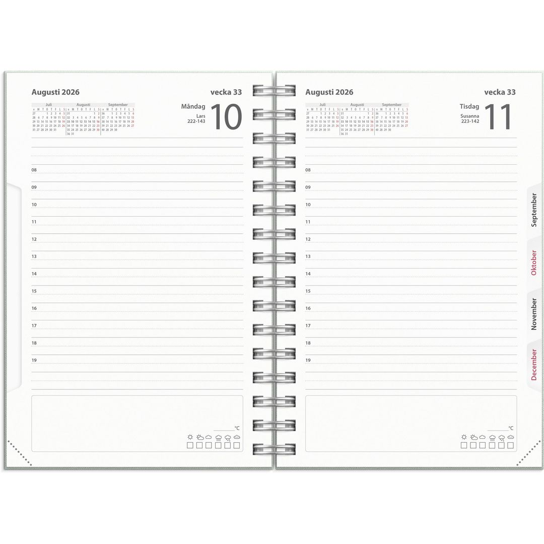 Detta textilomslag med det präglade årtalet ger ett stilrent och elegant intryck som passar året om. Inlagan har en dag per sida och timindelning 08-19. Innehåller årsplaner och har ett urstansat månadsregister för att lättare hitta till rätt månad. Genom att sortera dina tankar kan du lära dig mer om dig själv, få enklare att hitta lösningar på problem och dessutom bättra på minnet.