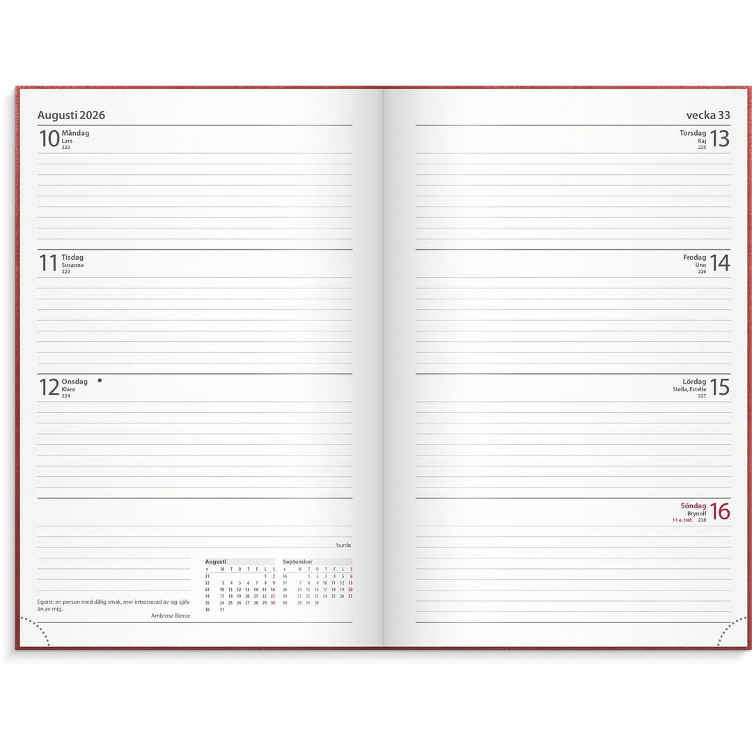 Burde Dagbokskalender Röd 2026