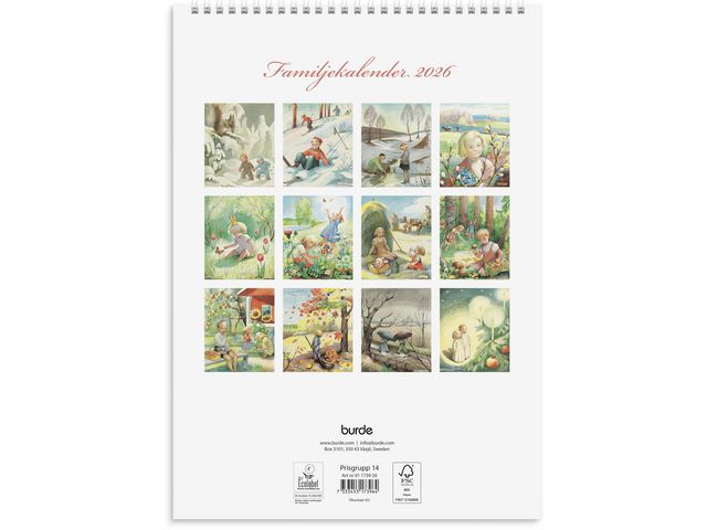 Följ årets månader med de vackra klassiska motiven som är illustrerade av Kerstin Frykstrand. Familjekalender med 4 kolumner som underlättar planeringen.