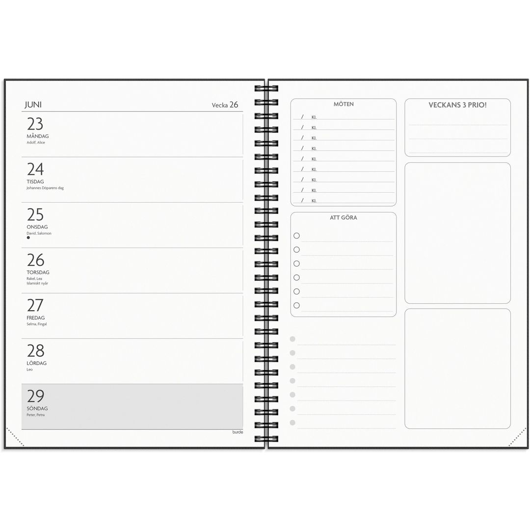 ● Layout: Liggande, vecka/uppslag