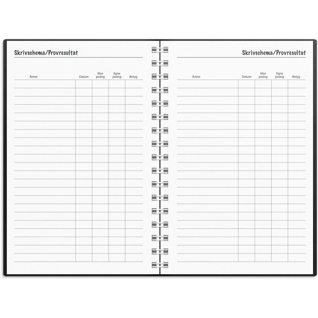 Liten och flexibel kalender med omslag i svart plast. Tack vare kalenderns lilla storlek kan du enkelt bära den med dig överallt. Förvara den i en ficka eller i din väska och plocka fram närhelst du behöver planera din tid, boka in nöjen eller bara för att skriva ner tankar som kommer till dig under dagen. För att underlätta en struktur i studierna innehåller kalendern även sidor där prov samt provresultat kan nedtecknas.